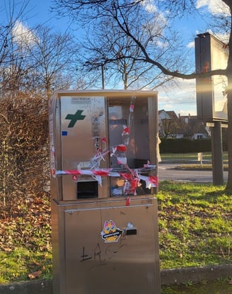 Cet รฉquipement qui permet aux toxicomanes de se procurer des seringues a รฉtรฉ installรฉ courant juillet 2022 rue des imprimeurs. Il est prรฉsentรฉ par ses promoteurs, associations d'aide aux toxicomanes et par des รฉlus, comme un dispositif "๐๐จ๐ฆ๐ฉ๐ฅ๐ฬ๐ฆ๐๐ง๐ญ๐๐ข๐ซ๐ ๐ฬ ๐ฅ๐ ๐ฌ๐๐ฅ๐ฅ๐ ๐๐ ๐ฌ๐ก๐จ๐จ๐ญ".